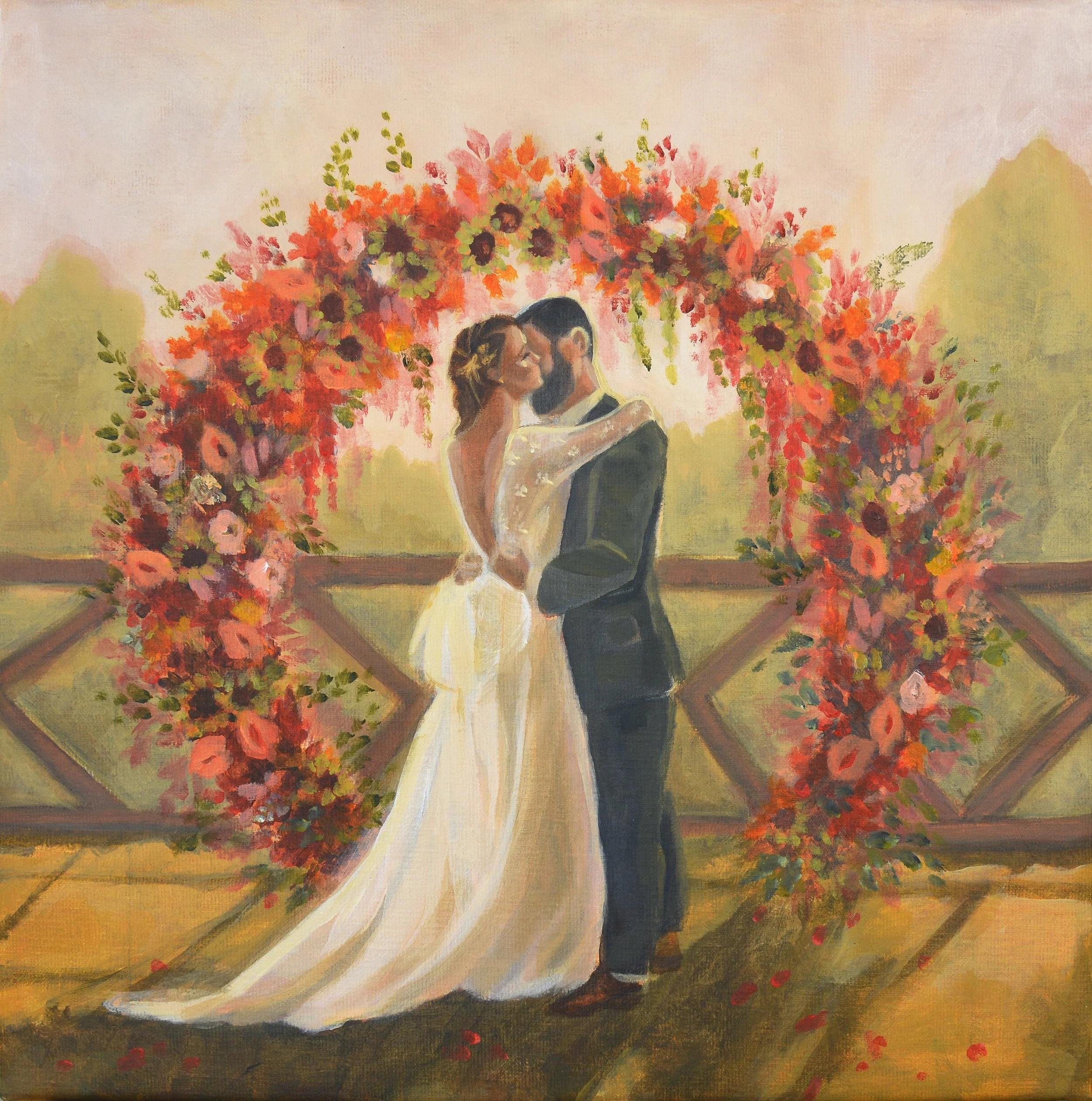 Levering op dezelfde dag: Mijn schilderstijl stelt me in staat een impressionistisch schilderij te maken dat spontaan en authentiek aanvoelt, zonder verdere details. Ik raad jullie echter aan het schilderij na jullie evenement mee te nemen, zodat ik eventuele retouches en details kan aanbrengen, met behoud van dezelfde stijl. Lees hier meer over in dit bericht.