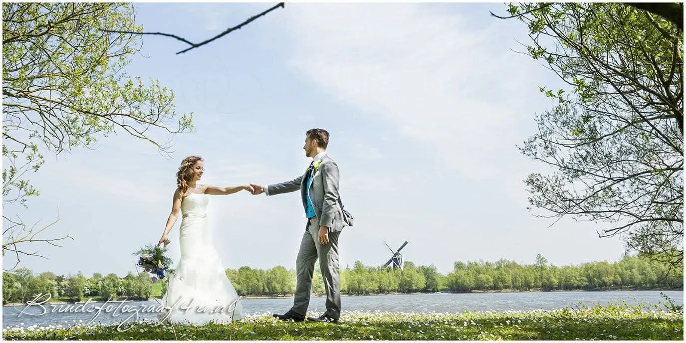 Het gelukkige paar danst bij de Waal, Nederland. Geïnspireerd door een foto van: kayphoto4u